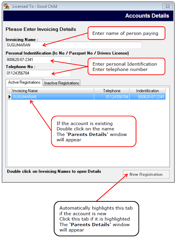 TUITION CENTER VERSIONOPERATION SETUP AND INSTRUCTIONSRegistration Button Account Details REGISTRATION - ACCOUNTS DETAILS Register person who is paying the bill