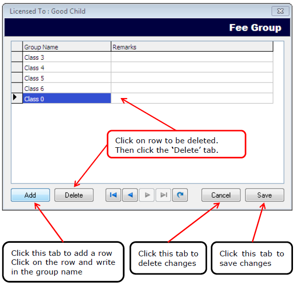 Students are grouped for easy operation. If there are many students, they can be seen on the main window by groups. This will make it easier to locate the student in the system. Fee Group assignment to a student is made at registration. The groups may have a predefined fee setting which can be applied to all the students belonging to that particular group. This makes it easy to change the fees for students. When the group fee is edited, the change will be applied to all the students belonging to that group.