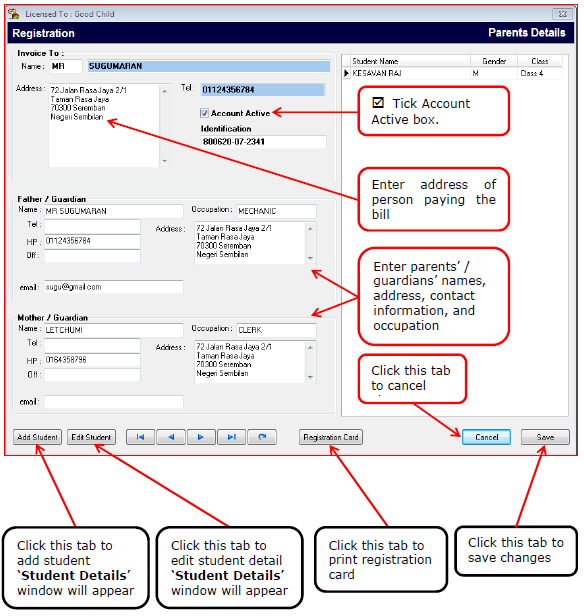 KINDERGARTEN / DAY CARE CENTER VERSIONOPERATION SETUP AND INSTRUCTIONSRegistration Button Parents / Guardians Details REGISTRATION - PARENTS / GUARDIANS DETAILS