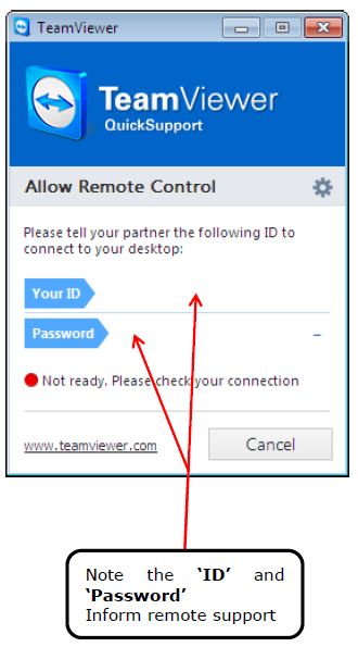 TEAM VIEWER ID / PASSWORD WINDOW
