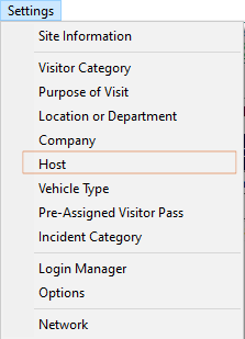 Click Settings Menu and Select Host.