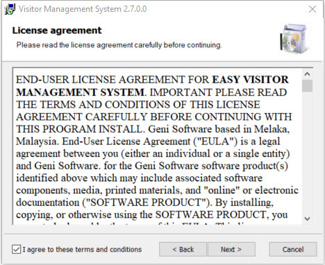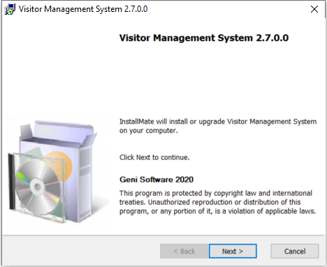 By default the Visitor Management System software and data files
