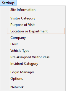 Click Settings Menu and Select Location or Department.