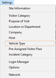Vehicle Type Click Settings Menu and Select Vehicle Type. Enter types of vehicle allowed on the property.