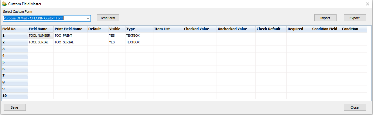 Getting StartedMaster Settings Custom Field Master Define custom fields for pop up forms. These fields will be applicable for chooses visit purposes.