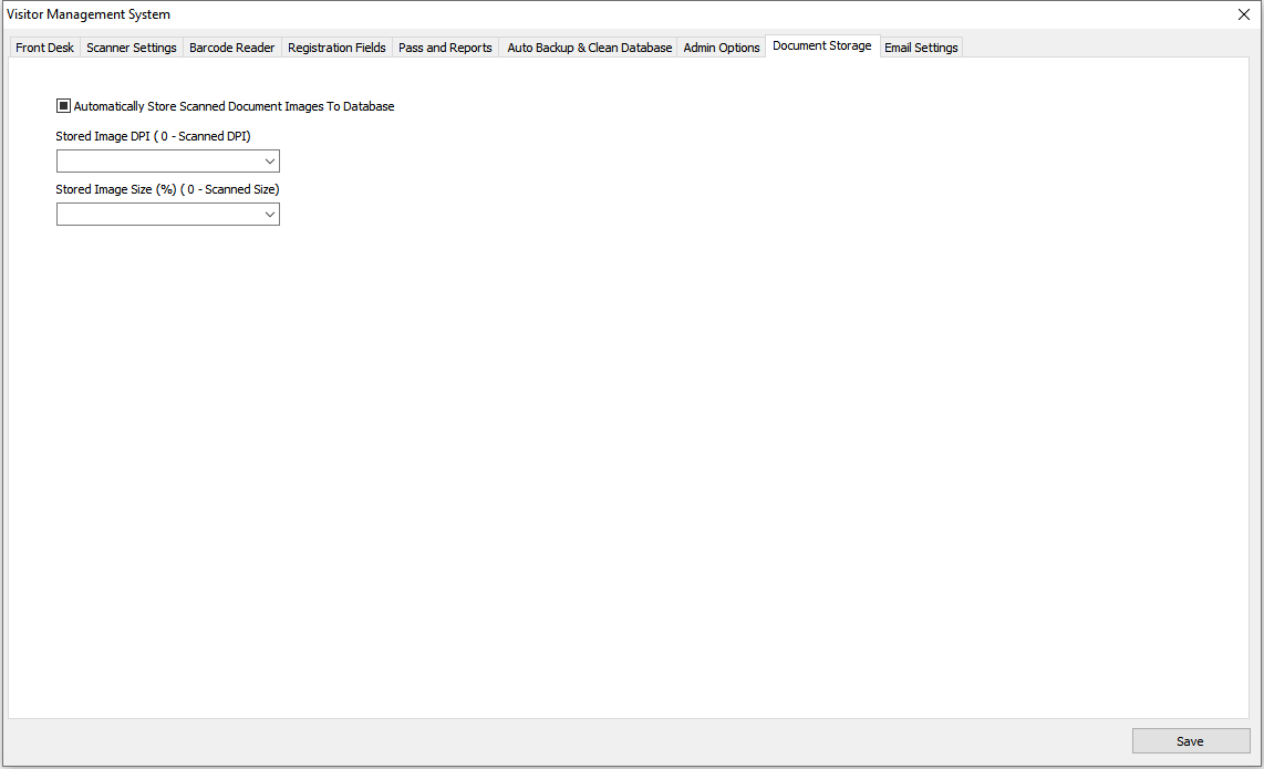 Settings for scanned documents to be stored in database