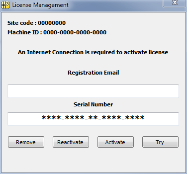 ** Your serial number key is very important. You will need it to activate, reactive or remove license. Please keep in a safe place.