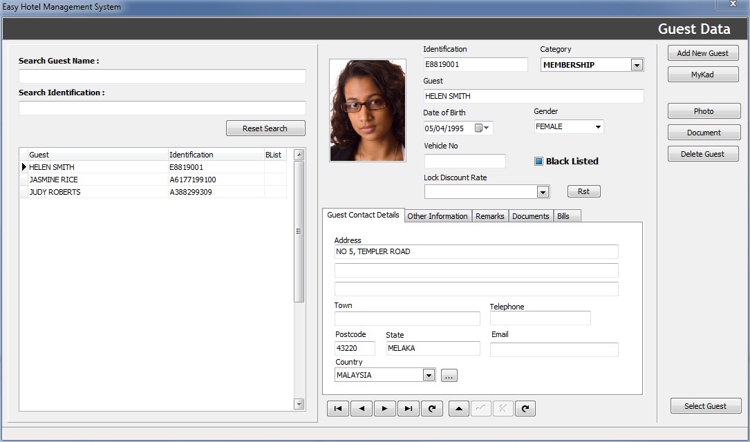 Easy Hotel Management System (property management software) is written for small hotel operations such as motels, budget hotels, bed and breakfast and Inn’s. Developed by GeniSoftware based in Melaka, Malaysia. This software is designed to be easy to use and can be installed easily.